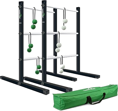 Ladder Golf ist ein unterhaltsames Geschicklichkeitsspiel, bei dem Spieler abwechselnd sogenannte Bolas (zwei durch eine Schnur verbundene Bälle) auf eine dreistufige Leiter werfen. Ziel ist es, die Bolas so zu werfen, dass sie sich um eine der Sprossen wickeln und dort hängen bleiben. Je nach Sprosse gibt es unterschiedlich viele Punkte – wer zuerst die vereinbarte Punktzahl erreicht, gewinnt.